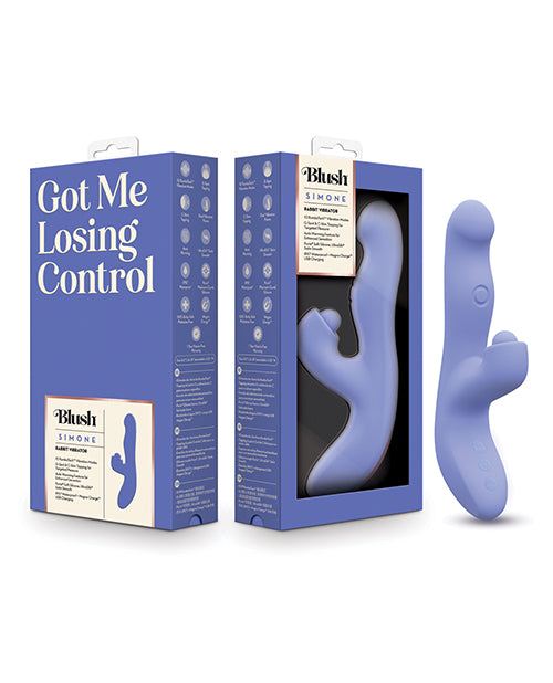 Meet Simone, your passionate companion for intimate exploration. Powered by Blushs RumboTech, this beautifully designed, dual-stim rabbit vibe combines 10 vibration modes with G-Spot and C-Stim tapping functions to deliver targeted sensations exactly where you crave them. Designed with a flexible shaft and sculpted external stimulator, Simone invites you to discover new heights of pleasure with effortless precision and passion. The auto-warming feature adds a layer of sensual heat, enhancing intimacy and heightening anticipation with every pulse. Crafted from 100% body-safe Puria silicone and wrapped in satin-smooth UltraSilk, Simone feels irresistibly soft and luxurious against your skin. With an IPX7 waterproof design, indulge in Simones pleasures during a relaxing bath or shower. Magna Charge USB charging ensures its always ready when you are. Bold yet intuitive, Simone is perfect for solo or partnered play, making every encounter unforgettable. Set your pace and get ready to lose control. One Year Warranty.