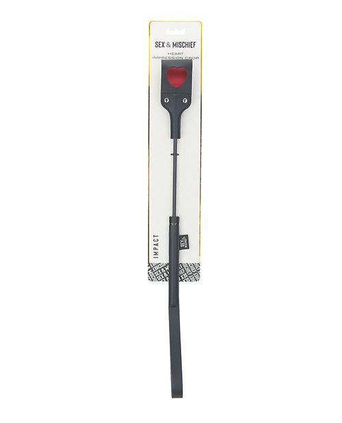 Feel the love with the S&M Heart Crop With heart cut-out, you're sure to leave your love note on your partner's skin. At 21 inches (55cm), it features black wand with wrist strap. Materials: Nickel free metal hardware, vinyl fabric, ABS plastic stick, rubber caps, red vinyl fabric Includes: 1 Impression Crop Heart tickler