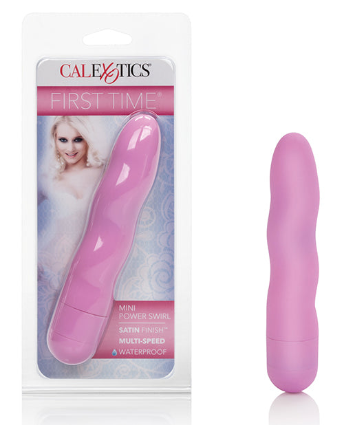 Super elegant and feminine, the First Time Mini Power Swirl is a stylish, intimate stimulator for ultimate personal pleasure. The unusual curvaceously contoured vibe has a velvety smooth finish. The vibes alluring and delicate wavy swirl shape are designed to heighten your sensual experience, whether youre a curious first-time explorer or experienced adventurer. The compact massager is waterproof and easy to use. The funky power-packed stimulator measures 4.5 x 1/11.5 cm x 2.5 cm and features a contoured solid shaft and smooth rounded tip, for maximum tingles. To control the intensity of the power simply twist the end cap to your desired speed setting. Start off slow, and gradually increase the pleasure ripples until you reach climax zone. The vibe can be used in the bath or shower, for additional fun. A single AA battery powers up the discreet teaser. The compact-sized stimulator is perfectly proportioned to slip into your purse for erotic adventures wherever you go. Use with aquality lubricant to enhance each arousing encounter. To clean the vibe, spray with toy cleaner or wash in warm, soapy water. This velvety soft, power-packed, curvy vibrator is the perfect pleasure companion.