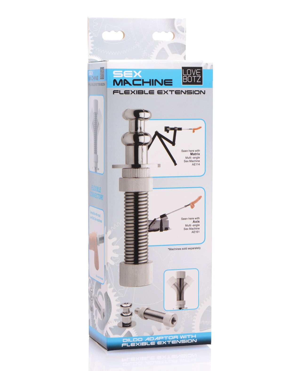 Compatible with most LoveBotz sex machines, this spring extender adds 3.5 inches of reach to your sex machine, while giving it realistic flexibility with every thrust. Providing extra torsion, this extension piece is attached to a Vacuum-Lock, Vacuum-Grip connector that enables you to easily interchange hundreds of differently-shaped vaginal and anal dildos. An orientation nut controls the direction of the attachment for versatility. Measurements: 6.25 inches in length, 1.75 inches in width. Material: ABS plastic, aluminum, metal. Color: Grey. Note: Dildo sold separately. Fits standard size vacuum-locking dildos.