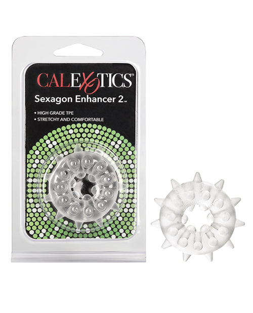 Super size your erection, pleasure, and performance with the Sexagon Enhancer 2. The easy to use, super stretchy erection enhancer provides comfortable support for increased girth, heightened sensitivity and extended orgasmic satisfaction. Simply slip the textured, pleasure nubbed enhancer over the erect penis and enjoy mind-blowing arousal, stimulation, and penetration ecstasy. The unique enhancer is made from unscented, TPE and has donut shape design that is covered with textured teasers and erotic pleasure nubs. The discreet erection enhancer stretches to provide a comfortable and secure fit, whatever your size. The exotic contoured rings internal grippers ensure that your support stays firmly in place, while you enjoy tantalizing stimulation and unforgettable explosions. To increase sensitivity, and to extend your intimate pleasure even further, always use a quality lube with this toy. Great for the first time and experienced users, the easy to use erection enhancer maximizes performance satisfaction every time. The soft and stretchy enhancer increases girth and provides all the support that you need for extended sensual encounters. For unlimited self-gratification exploration, slip the enhancer over the erect penis at the start of arousal and stimulation play. The ring is designed to super size your erection and increase your climax pleasure. Before and after every use, clean the sensuous enhancer in warm, soapy water, or with a toy cleaner spray.