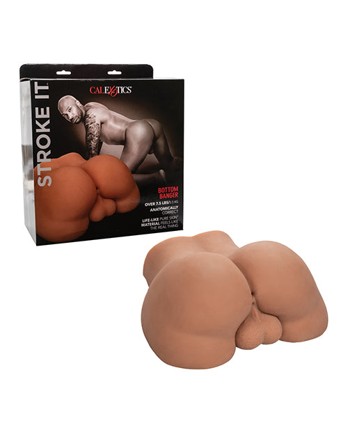 The Stroke It collection brings you the Bottom Banger, meant to thrill with a real-feel stroking experience. Dive deep into over 7.5 pounds of heavy-duty stroking pleasure with a realistic pleasure chamber and life-like design. The life-like feel and ultra-tight, textured chamber takes power bottom to a whole new level to create a wonderland of pleasure for any member willing to slip inside. The plump stroker ass is great for anyone wanting a little more from their pleasure play with realistic balls and luscious round ass design. Over 7.5 pounds of Pure Skin material make for the truly heavy-duty, pounding pleasure you've been craving. Pure Skin is a super-soft, ultra stretchy material with a unique, life-like feel delivering pure satisfaction in every stroke. This durable sleeve is easy-to-use and requires no special care.